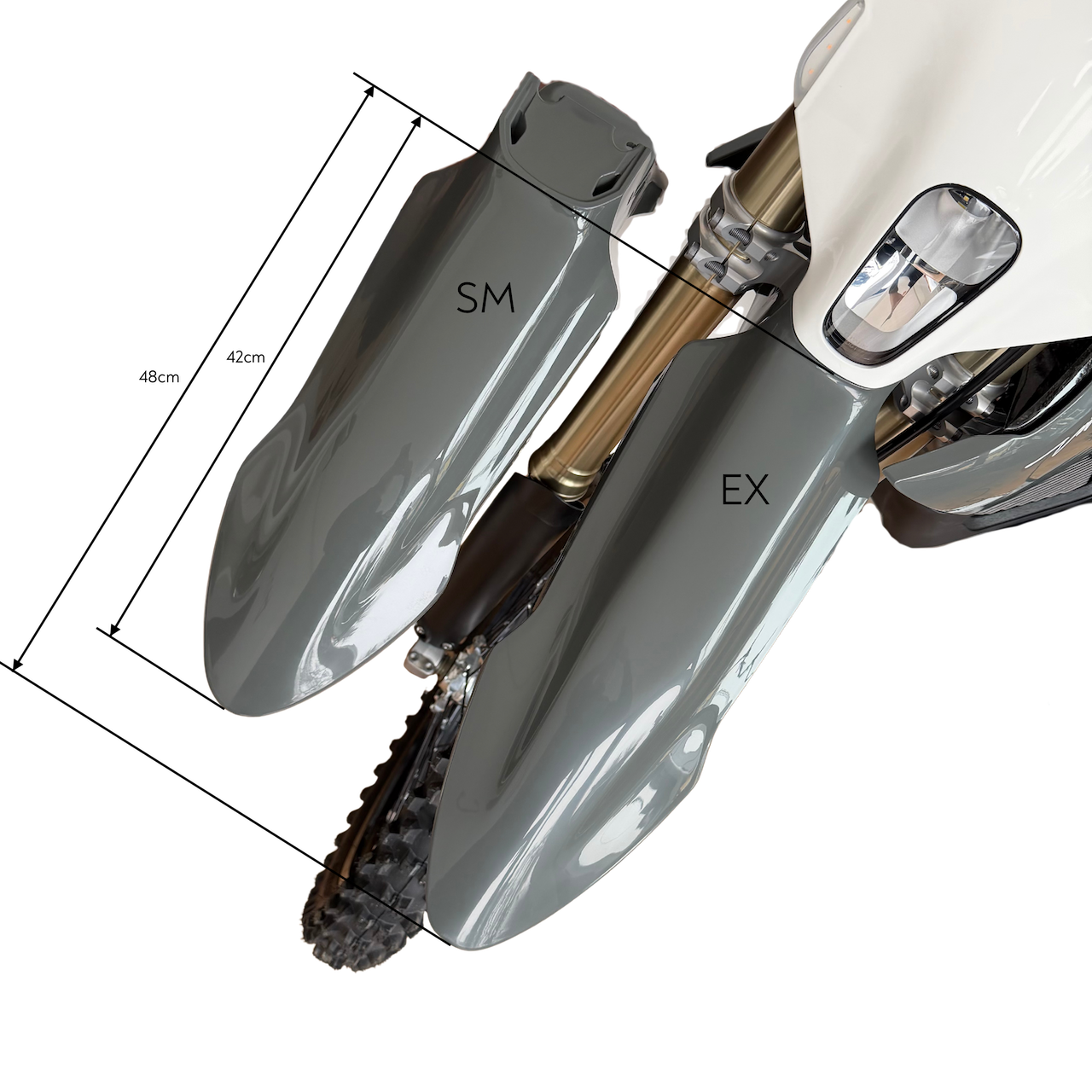 Der Kotflügel der STARK FUTURE VARG SM ist im vergleic zur EX im 6cm kürzer.