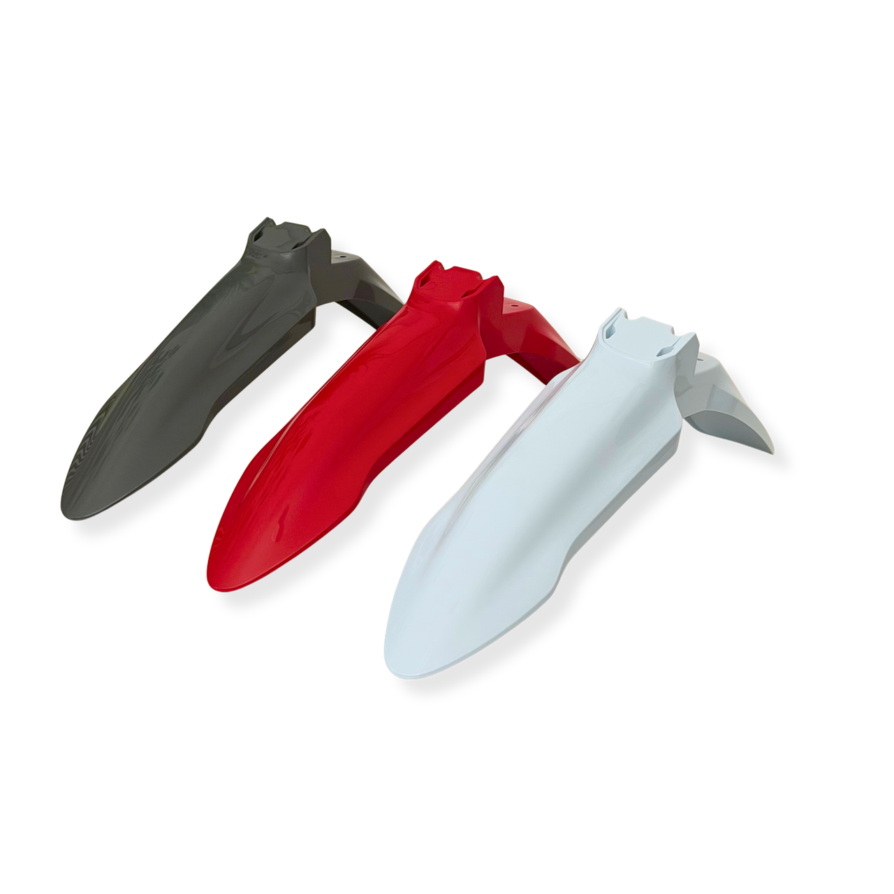 - Ein kürzerer Kotflügel ermöglicht auch bessere Luftzirkulation zur Bremsanlage, was bei Supermotos (mit viel Vorderradbremseinsatz) hilft, die Bremse zu kühlen.